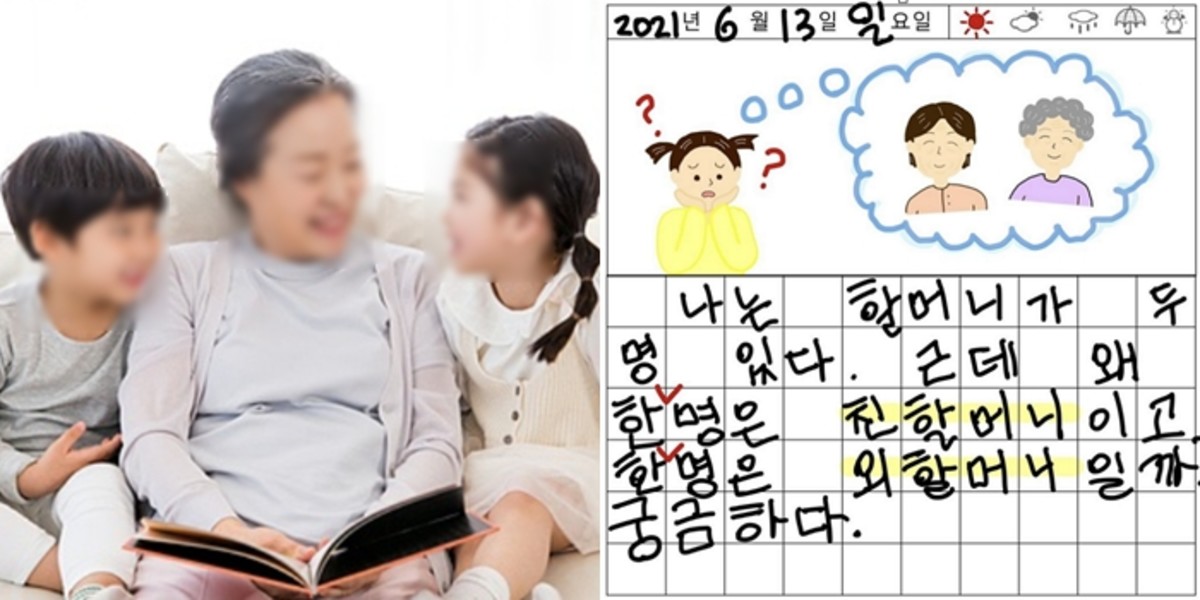 함께 첨부된 사진에는 어린아이가 그린듯한 '그림일기' 형태로 "난 할머니가 두 명 있다. 근데 왜 한 명은 친할머니이고 한 명은 외할머니인지 궁금하다"는 내용이 담겼다.