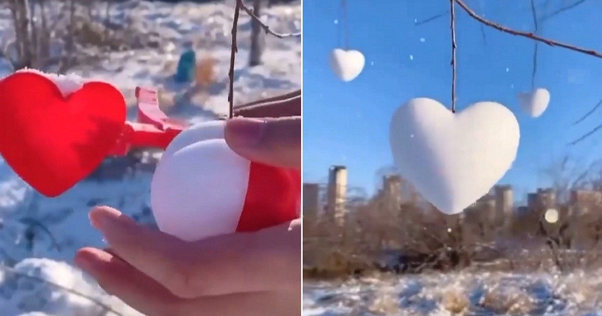 잠시 후 누리꾼이 집게를 쏙 빼내자 나뭇가지에는 하트 모양을 한 눈덩이가 마치 열매처럼 주렁주렁 달려 있어 보는 이들을 놀라게 한다.