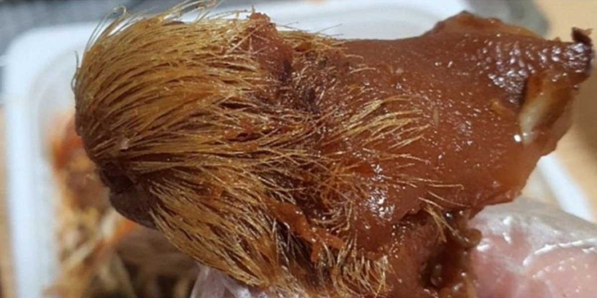 그런데 족발이 조금 이상하다. 뽀얀 속살이 있어야 할 자리에 숱이 많은 털이 나 있다.