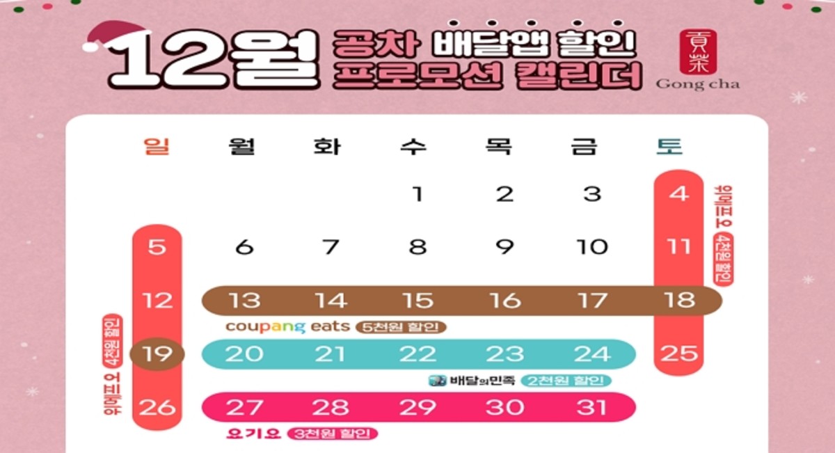 공차의 12월 배달앱 할인 프로모션에 대한 자세한 정보는 공차 공식 홈페이지와 각 배달앱을 통해 확인할 수 있다.
