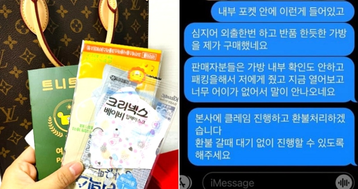 이후 A씨는 물건을 판매한 루이비통 직원의 명함에 적힌 번호로 가방 내부를 찍은 사진과 함께 "내부 포켓 안에 이런 게 들어있고, 심지어 외출 한 번 하고 반품한 듯한 가방을 제가 구매했다"고 문자를 보냈다.