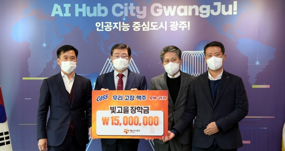 [인사이트] 함철민 기자 = 오비맥주는 12월 6일 자사 대표 브랜드 '카스' 생산공장이 위치한 광주시에 지역 인재 육성을 위한 '빛고을 장학금' 1500만 원을 전달했다고 밝혔다.