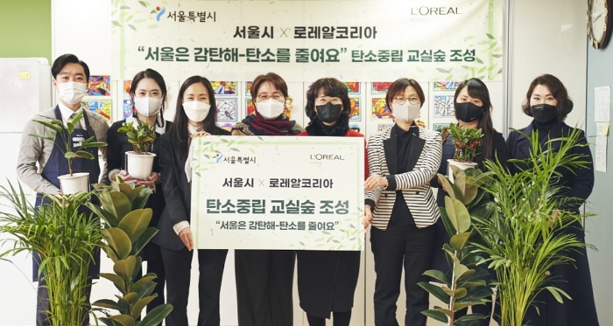 '탄소중립 교실숲' 조성 사업은 로레알코리아와 서울시가 일상 속 탄소 줄이기 실천문화 확산을 위해 업무 협약을 맺은 '서울은 감탄해-탄소를 줄여요' 캠페인의 일환으로 진행됐다.