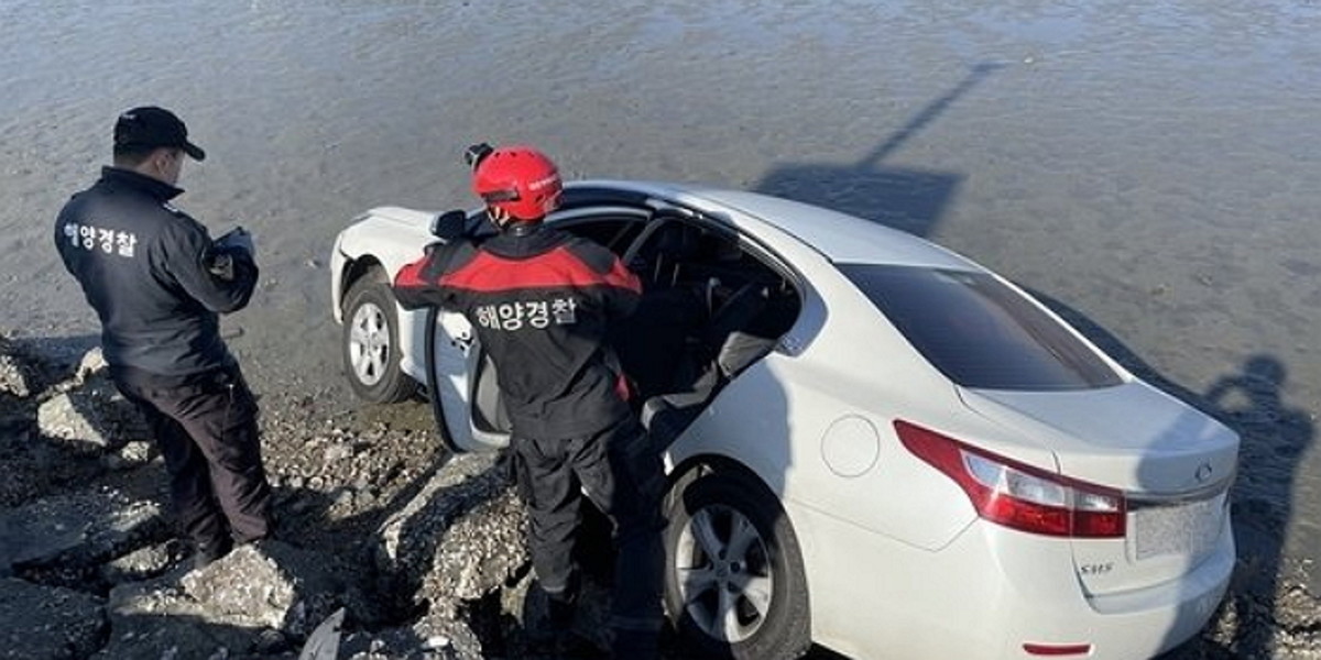 해경은 갯벌에 빠진 승용차를 오후 2시 30분쯤 크레인을 이용해 인양했다.
