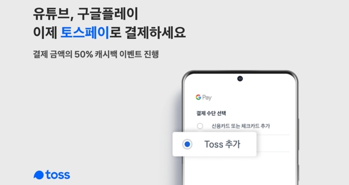 이번 제휴를 기념한 캐시백 이벤트도 진행된다. 오는 31일까지 구글플레이 혹은 유튜브에서 토스페이로 결제 시, 최대 5천 원 한도 내에서 결제 금액의 50%를 토스포인트로 돌려준다. 이벤트는 예산 소진 시 조기 마감될 수 있다.