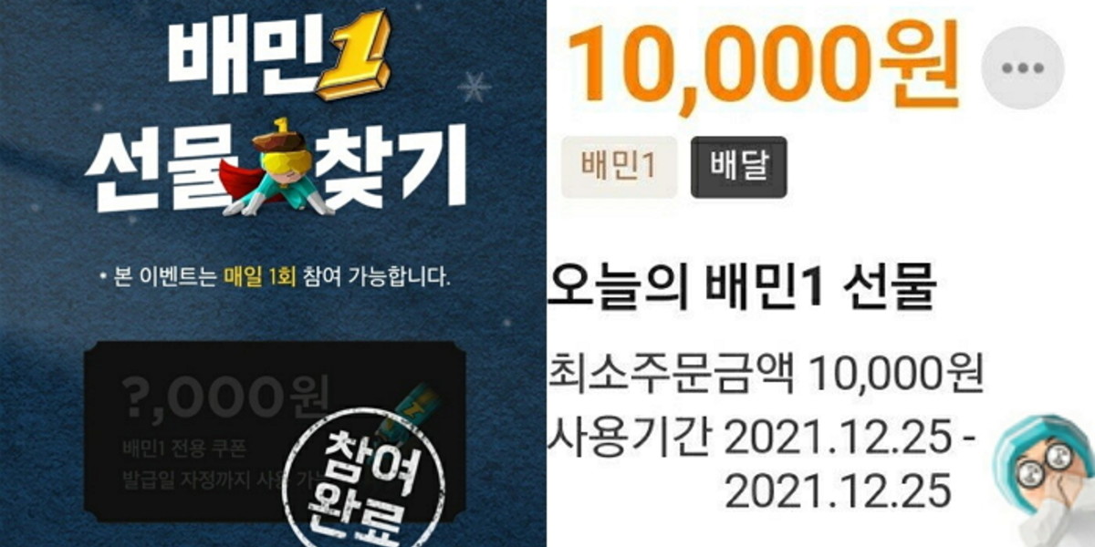 쿠폰은 발급일 당일 자정까지 사용할 수 있는데 배달의민족 앱 내 '배민1' 카테고리 한해서 사용할 수 있으니 참고하자.