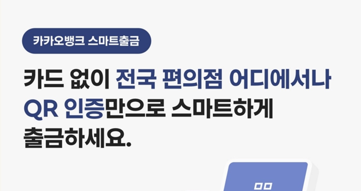 카카오뱅크는 고객이 보다 간편하고 안전하게 스마트출금 서비스를 이용할 수 있도록, QR코드 인증만으로 ATM에서 출금할 수 있는 개편된 스마트출금 서비스를 선보였다. 개편된 서비스를 이용하면, ATM에 노출되는 QR 코드를 촬영하고 카카오뱅크 앱에서 출금할 금액과 인증 비밀번호를 입력하면 출금이 완료된다.
