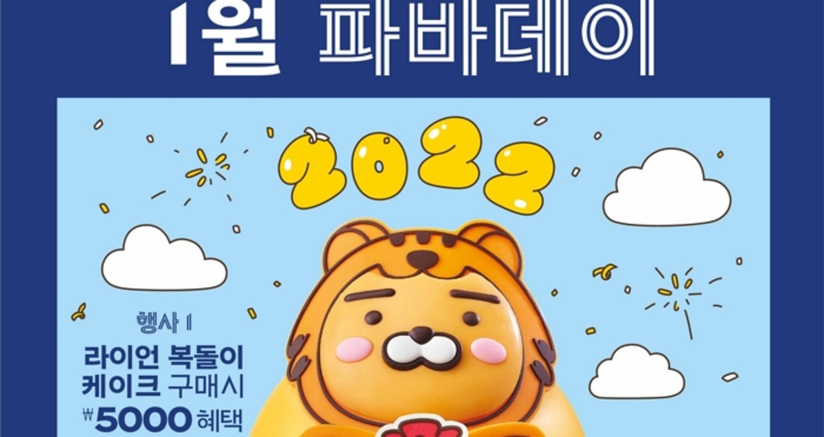 임인년 새해가 시작되는 1월의 파바데이에는 '복(福)'을 가득 담은 신년 제품과 연계한 혜택을 선보인다. 12월 29일부터 1월 5일까지 카카오프렌즈와 협업해 인기 캐릭터 라이언을 형상화한 '라이언 복돌이' 케이크 구매 시 5천원 혜택을, 복 주머니를 닮은 '만월빵' 구매 시 3천원 혜택 쿠폰을 제공한다.
