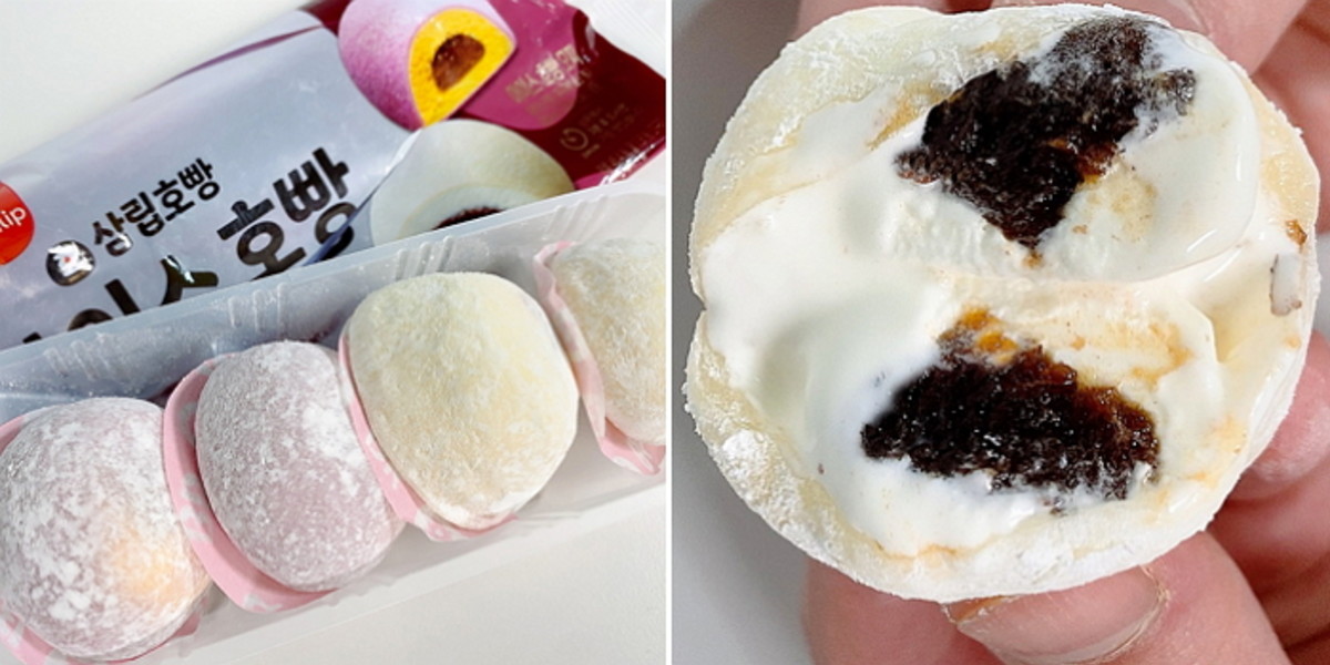 아이스 호빵 단팥 맛은 부드러운 우유 아이스크림과 달달한 팥 리본이 쫀득한 떡 안에 꽉 차 있다.