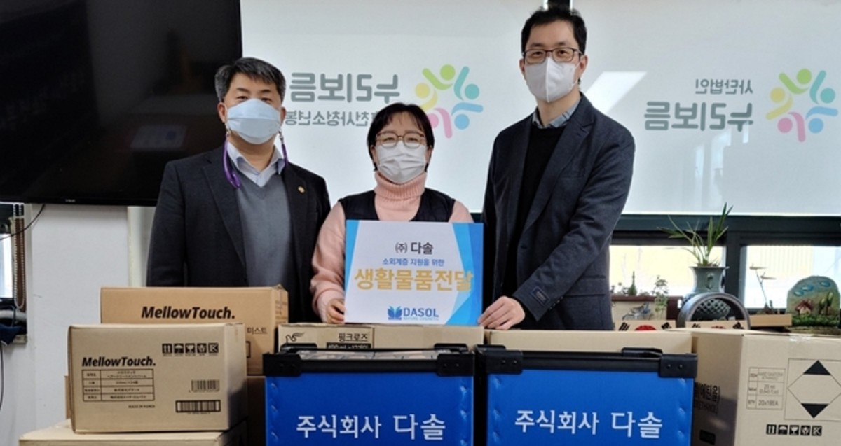 다솔은 지난 6일, 코로나19로 힘겨워 하는 지역 주민들을 위한 후원물품 손소독제 등 생활물품 7종을 고양시 덕양구 사단법인 누리보듬에 전달했다.