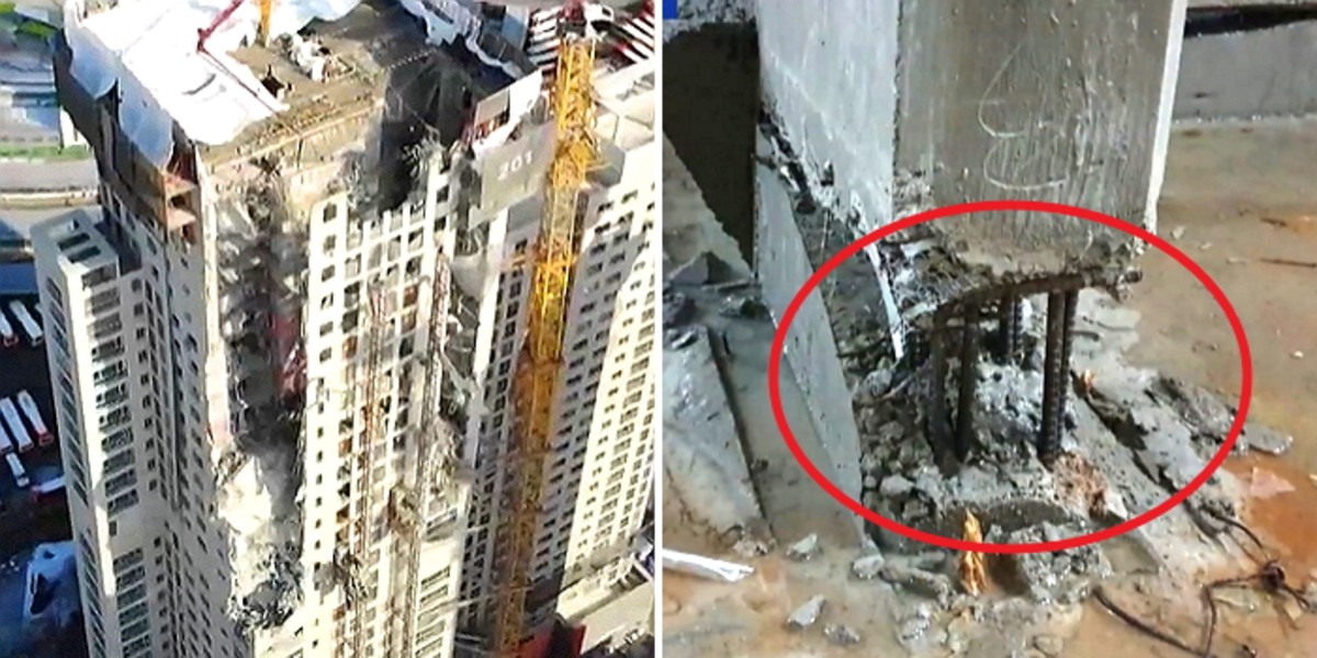 실제 39층의 하중을 받는 지하층 기둥은 밑부분이 떨어져 나갔다.