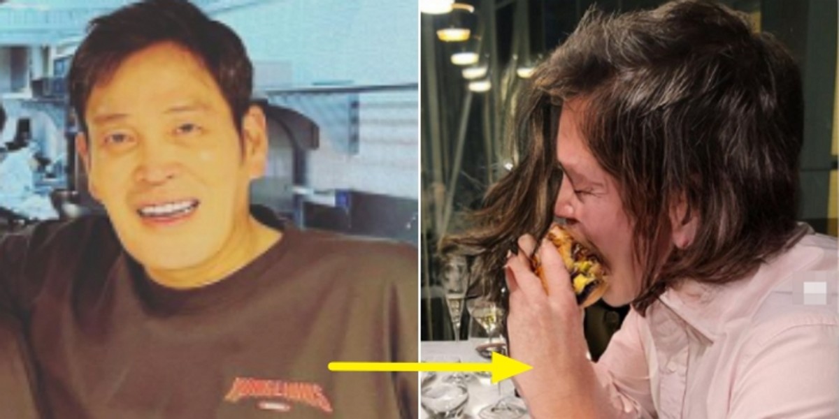 첫번째 사진 속 정 부회장은 머리를 휘날리며 햄버거를 먹고 있다. 얼굴의 절반만한 큰 햄버거를 베어무느라 입을 한껏 벌리고 있는 모습이 인상적이다.