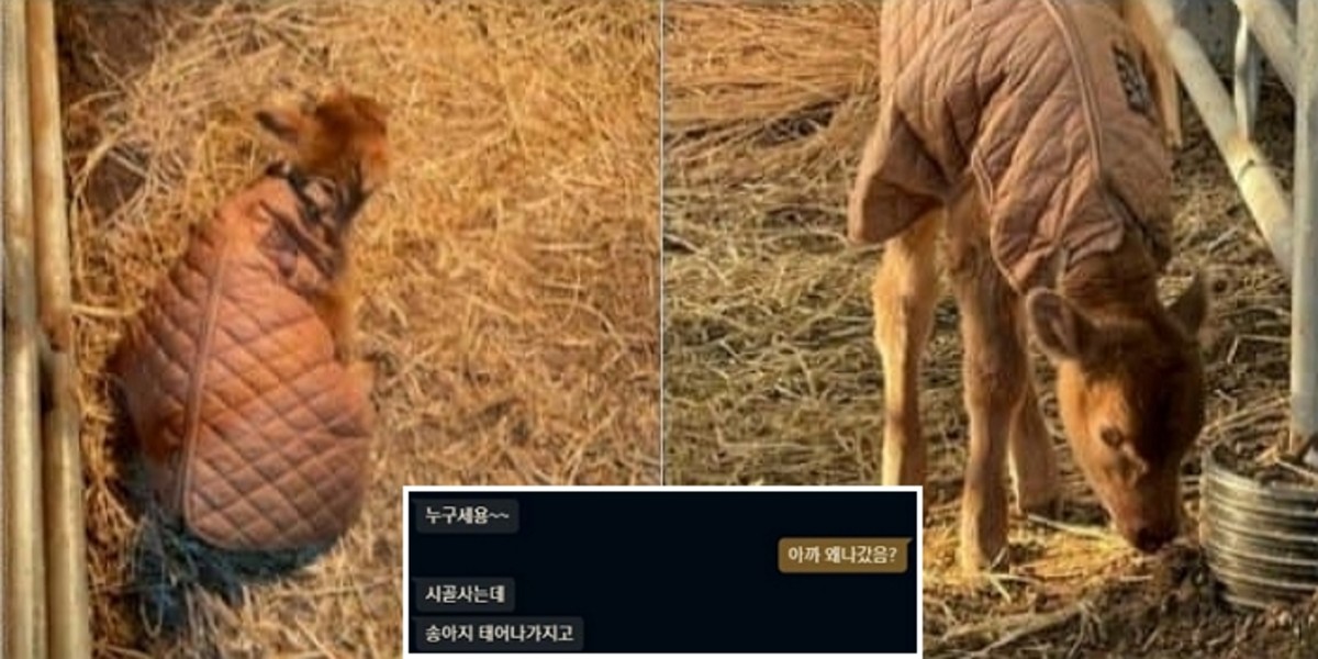 B씨가 보낸 사진 속에는 갓 태어난 송아지가 따뜻한 옷을 입고 축사에서 휴식을 취하고 있었기 때문이다.