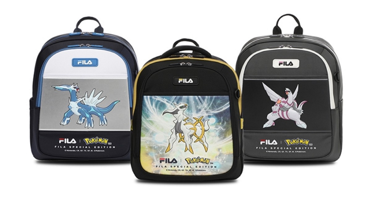 휠라 키즈 포켓몬 백팩 에디션은 환상의 포켓몬이라 불리는 '아르세우스', 전설의 포켓몬인 '디아루가', '펄기아'의 모습을 각각 반영한 책가방 및 보조가방 세트 3종으로 구성됐다.
