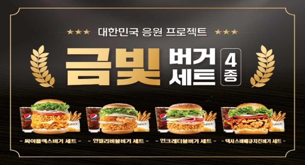 '금빛 버거세트' 프로모션은 싸이플렉스버거, 언빌리버블버거, 인크레더블버거, 텍사스바베큐치킨버거 4종의 인기 버거 중 하나와 케이준 양념감자, 음료로 구성된다. 매장 방문 및 포장 고객에 한해 1천원 할인이 적용된다.