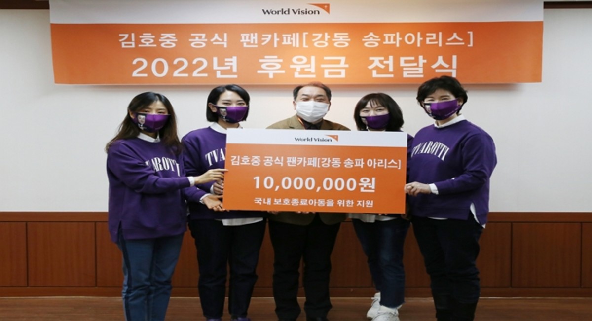 [인사이트] 김한솔 기자 = 월드비전이 가수 김호중 공식 팬카페 '강동 송파 아리스'로부터 보호종료아동을 위한 후원금 1,000만원을 전달받았다고 7일 밝혔다.