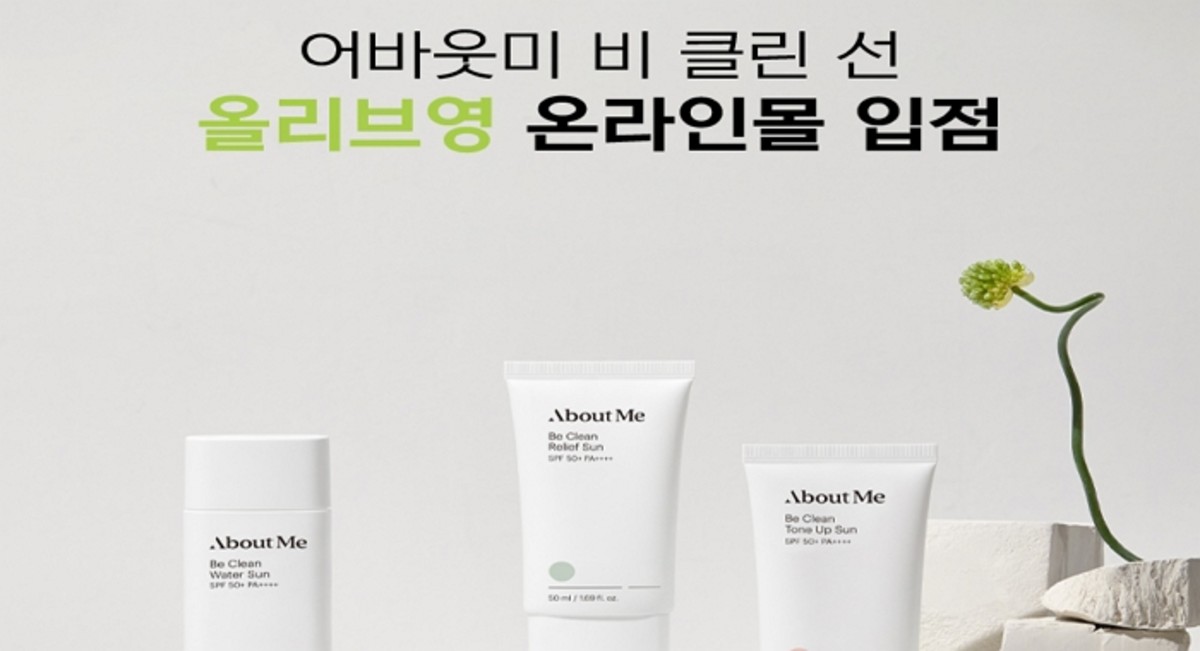 어바웃미 비 클린 선라인 3종은 내추럴하게 피부 톤을 보정해주는 '톤업 선', 민감 피부를 위한 '릴리프 선', 쿨링과 수분 공급을 위한 '워터 선' 등 3종으로 구성된 자외선 차단제다.