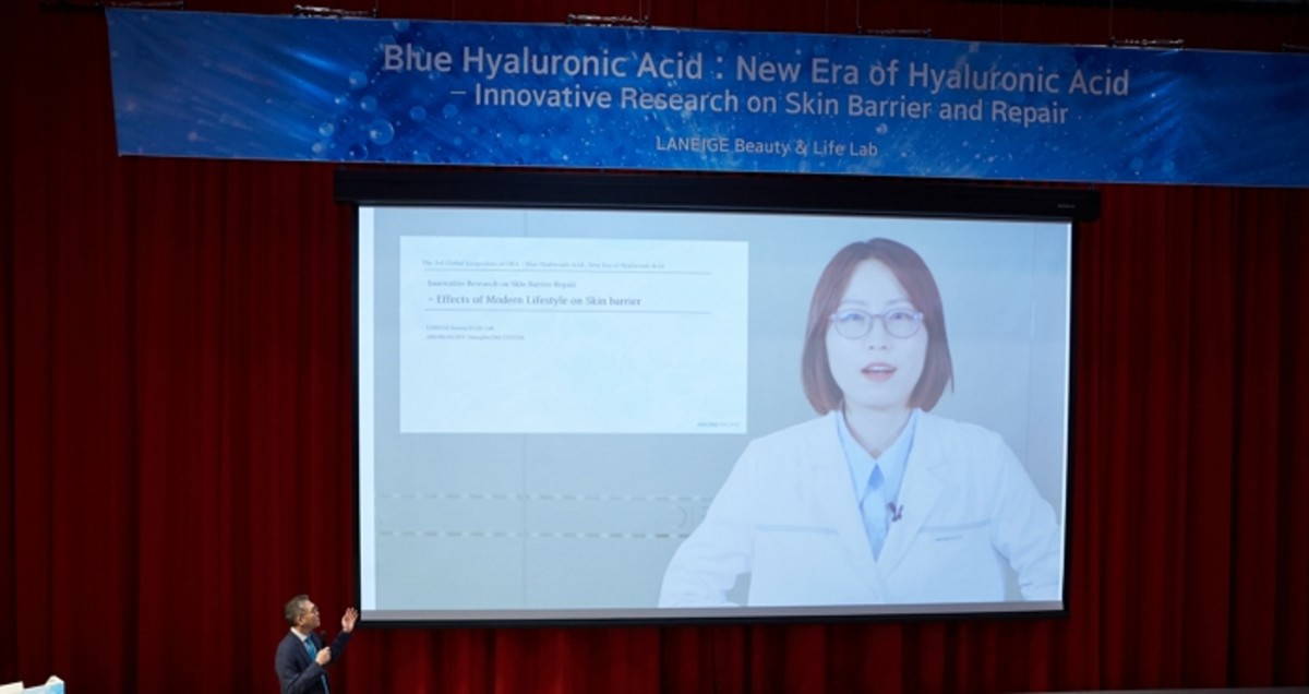 마지막 발표를 맡은 아모레퍼시픽 기술연구원 박안나 수석연구원은 혁신적인 리페어 보습 성분인 블루 히알루론산을 소개했다. 박안나 수석연구원은 "2월 출시 예정인 라네즈 워터뱅크의 대표 성분인 블루 히알루론산은 2차 발효와 10단계 농축, 정제 과정을 거쳐 기존 히알루론산보다 2,000배 작은 혁신적인 크기를 자랑한다. 특히 300% 더 강력한 리페어 보습 효능으로 피부 건조와 손상된 피부 장벽 개선에 도움을 준다"고 말했다.