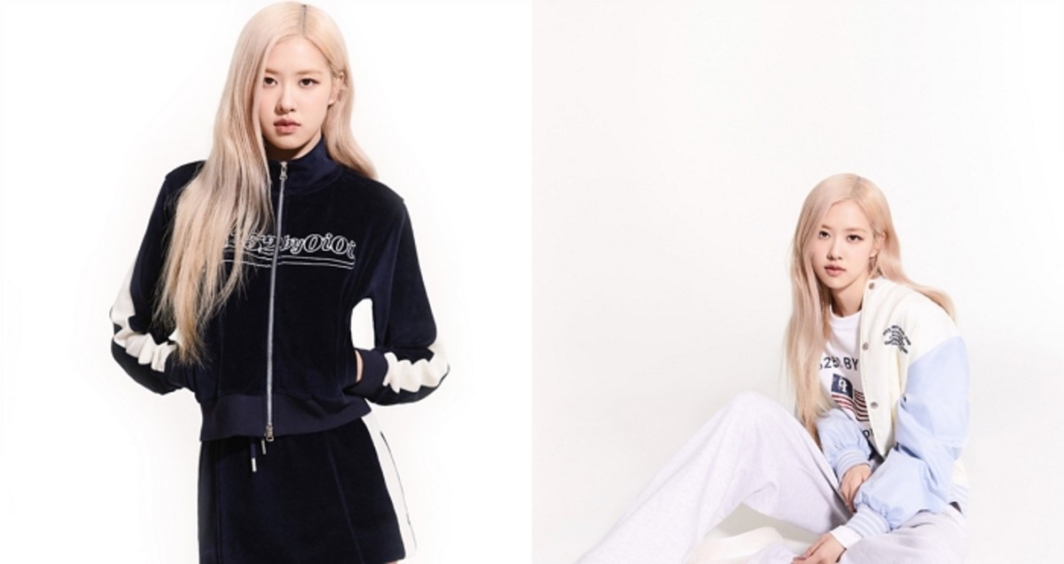 로제가 착용한 벨루어 집업 트레이닝 셋업은 고급스러운 느낌의 벨루어 소재에 트렌디한 트랙수트 디자인을 더해 편안하면서도 시크한 분위기를 연출하기 좋다.