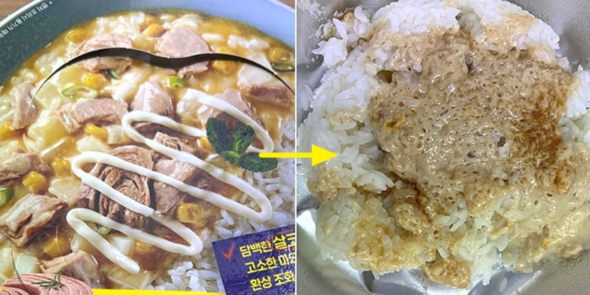 그런데 한 소비자가 편의점에서 먹음직스러운 비주얼의 연출 사진이 담긴 인스턴트 컵밥을 구매했다가 현저히 차이 나는 조리 후 실제 모습에 큰 실망감을 내비쳤다.