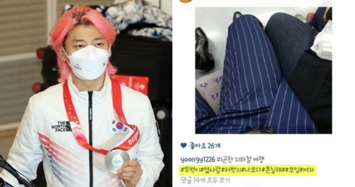 앞서 곽윤기는 지난 2014년 4월 11일 자신의 인스타그램에 "피곤한 지하철 여행. 옆 사람 (여자) 허벅지 나보다 튼실해 보인다"라는 글을 올렸다.
