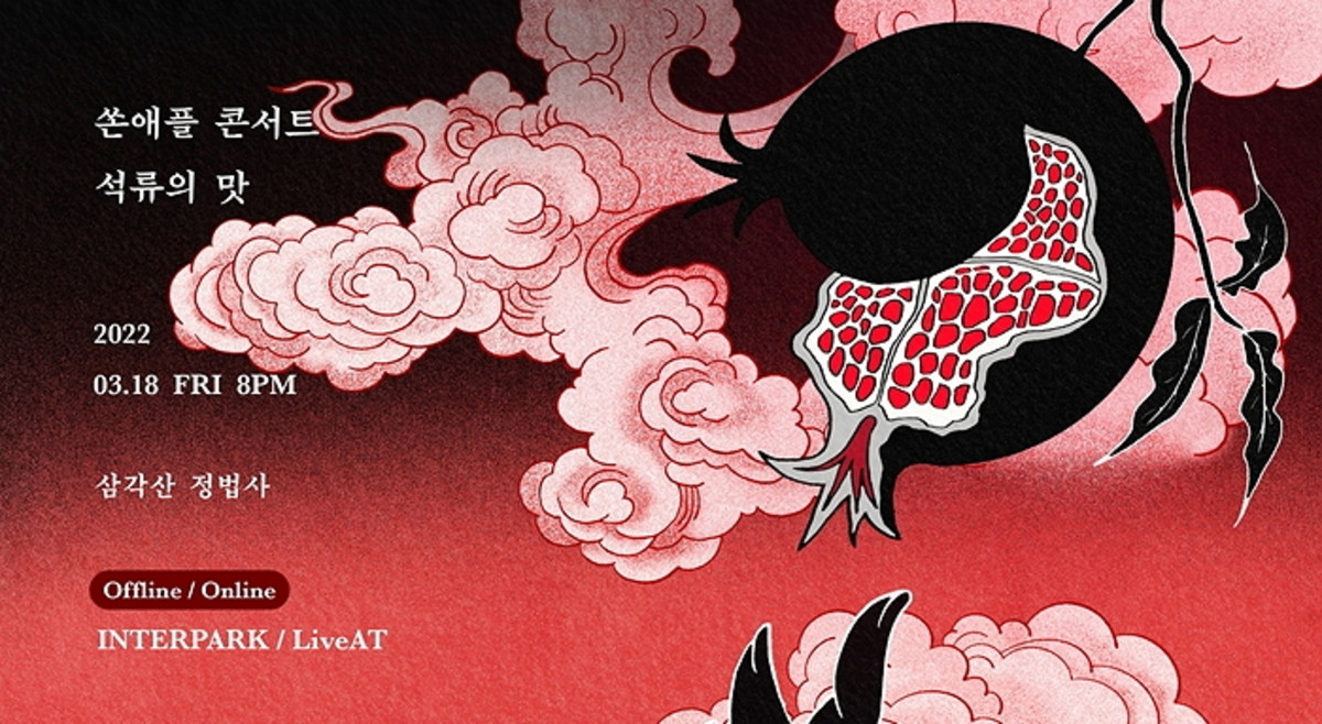 쏜애플의 콘서트 '석류의 맛'을 현장에서 직접 만나볼 수 있는 오프라인 티켓은 오늘(25일) 오후 6시 온라인 예매사이트 인터파크 티켓을 통해 오픈되며, 온라인 티켓은 같은 시간 온라인 예매 사이트 LiveAT에서 오픈된다.