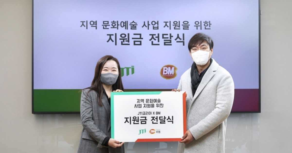 [인사이트] 함철민 기자 = JTI코리아가 비엠에 지역 문화예술 활성화를 위한 지원금을 전달했다고 밝혔다.