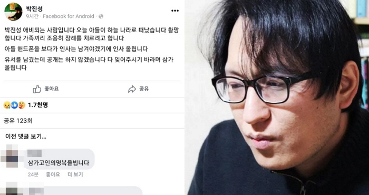 앞서 지난 14일 박 시인의 페이스북에는 "박진성 애비 되는 사람입니다"라는 문구로 시작돼 "오늘 아들이 하늘나라로 떠났습니다"라는 글이 게재됐다.