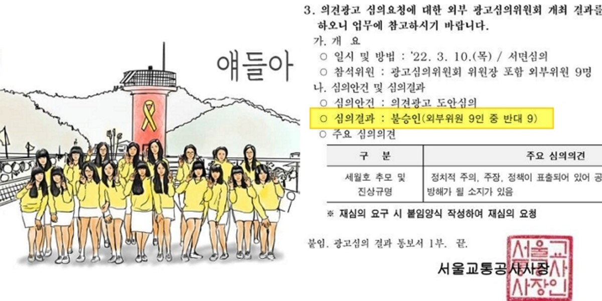 [인사이트] 유진선 기자 = 서울교통공사가 대선 직후 세월호 8주기 추모광고에 대해 불승인 통보를 한 것으로 알려졌다.