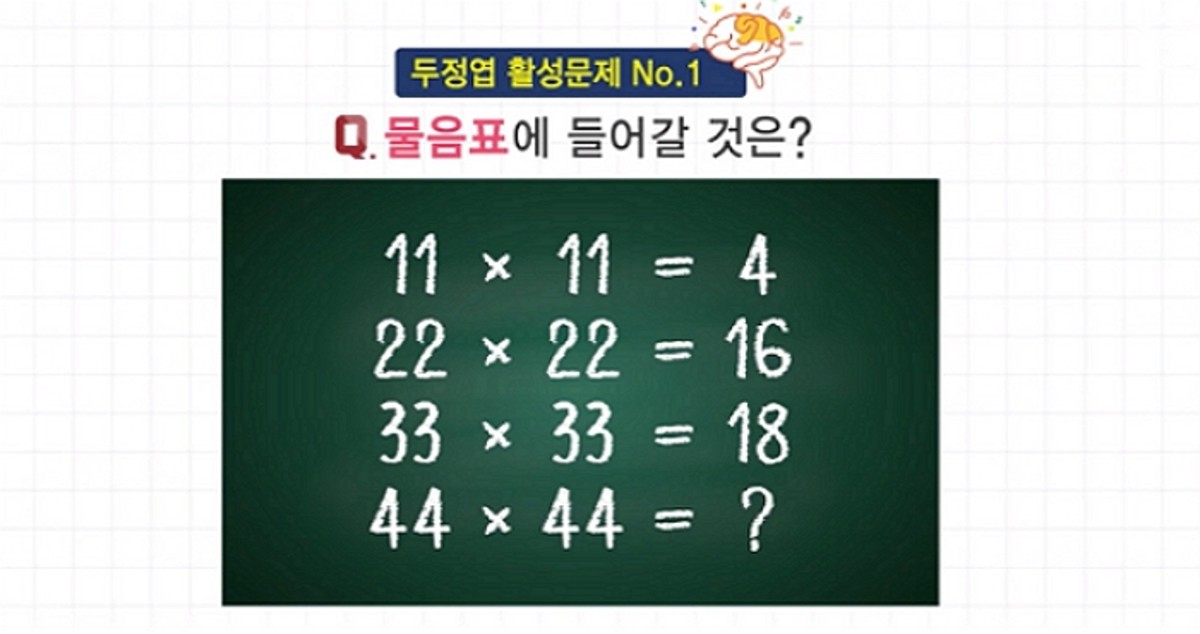 문제는 간단하다. '11 X 11 = 4, 22 X 22 = 16, 33 X 33 = ?'에서 물음표에 들어갈 숫자를 맞히면 된다.
