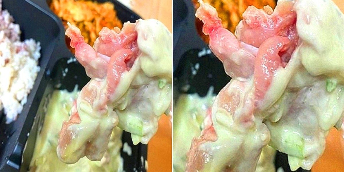 공개된 사진에는 전혀 조리가 되지 않은 것으로 보이는 생닭고기가 소스와 함께 버무려져 있다.