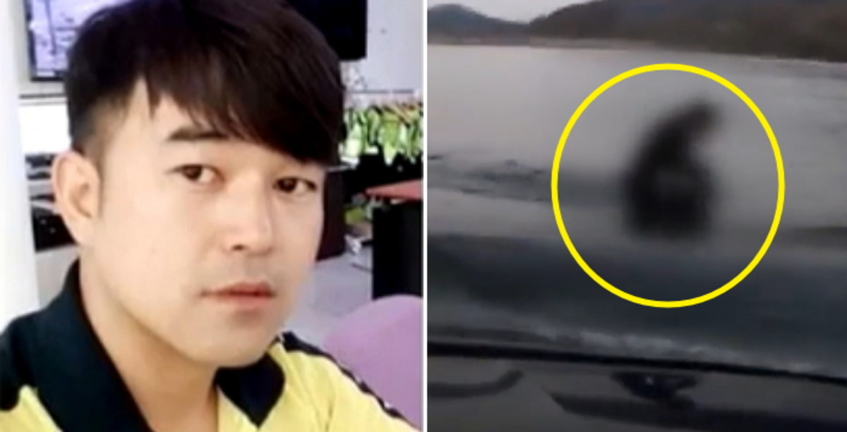 주인공은 강 급류에 휩쓸려 속수무책으로 떠내려가는 사람을 구하기 위해 SUV를 몰고 망설임 없이 물속으로 뛰어들었다.
