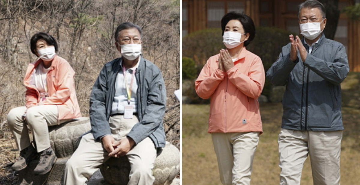 지난 5일 문 대통령 부부는 청와대 뒤편 서울 북악산 남측 탐방로 개방을 기념하는 산행을 하며 신라 때 창건된 법흥사의 자리로 추정되는 절터에 도착, 김현모 문화재청장과 이야기를 나누는 과정에서 연화문 초석을 깔고 앉았다.