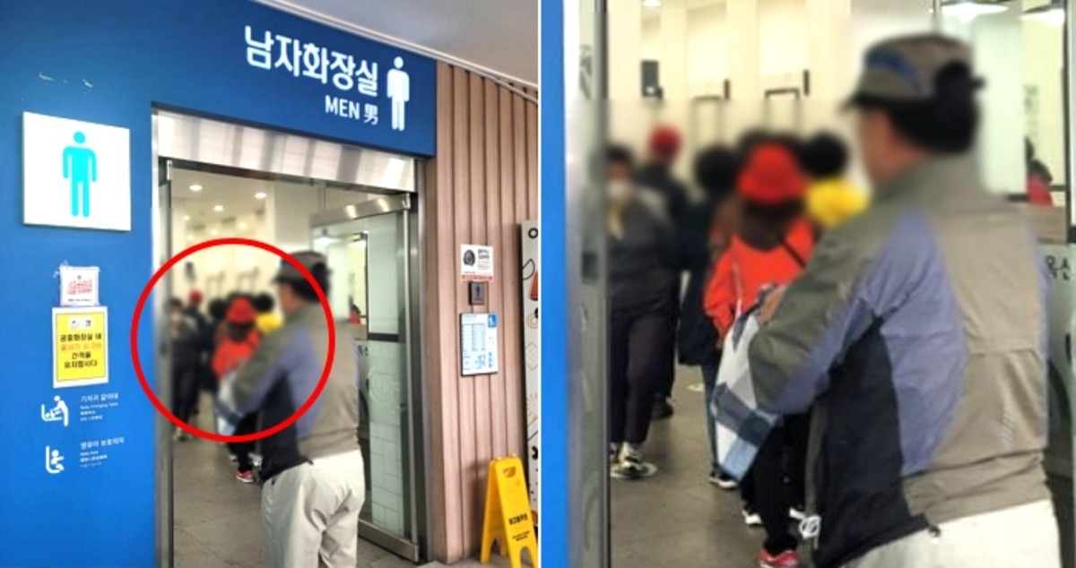 사진은 고속도로 휴게소 남자 화장실 입구에서 찍은 것으로 내부에 여성들이 줄 서 있는 모습이 담겼다.