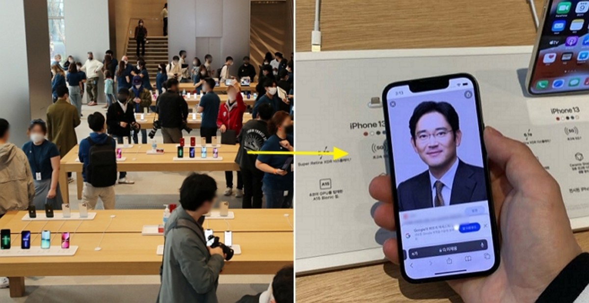 [인사이트] 임우섭 기자 = 최근 서울 명동 애플스토어가 정식 오픈한 가운데 경쟁사 대표 이재용 삼성전자 부회장이 기습 등장해 웃음을 자아냈다.