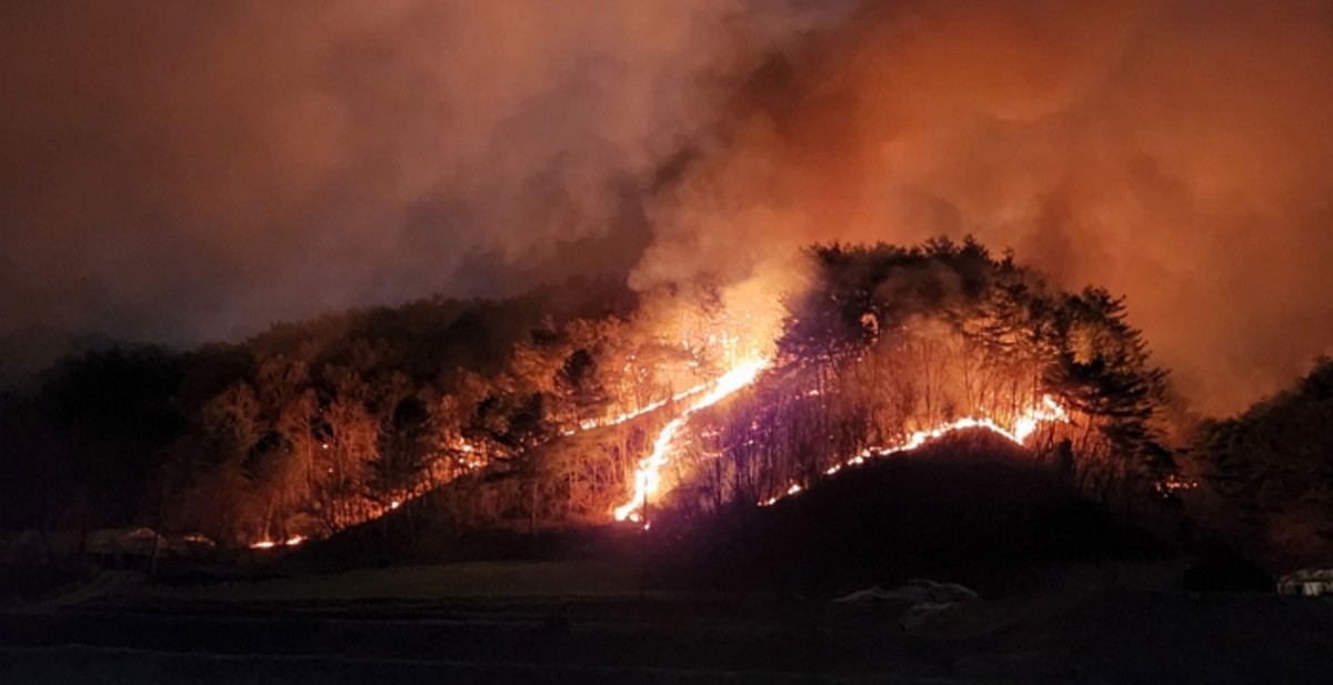 해가 지면서 헬기는 모두 철수했고, 밤새 진화 인력 500여 명이 민가로 불이 번지지 않게 방화선을 구축했다.