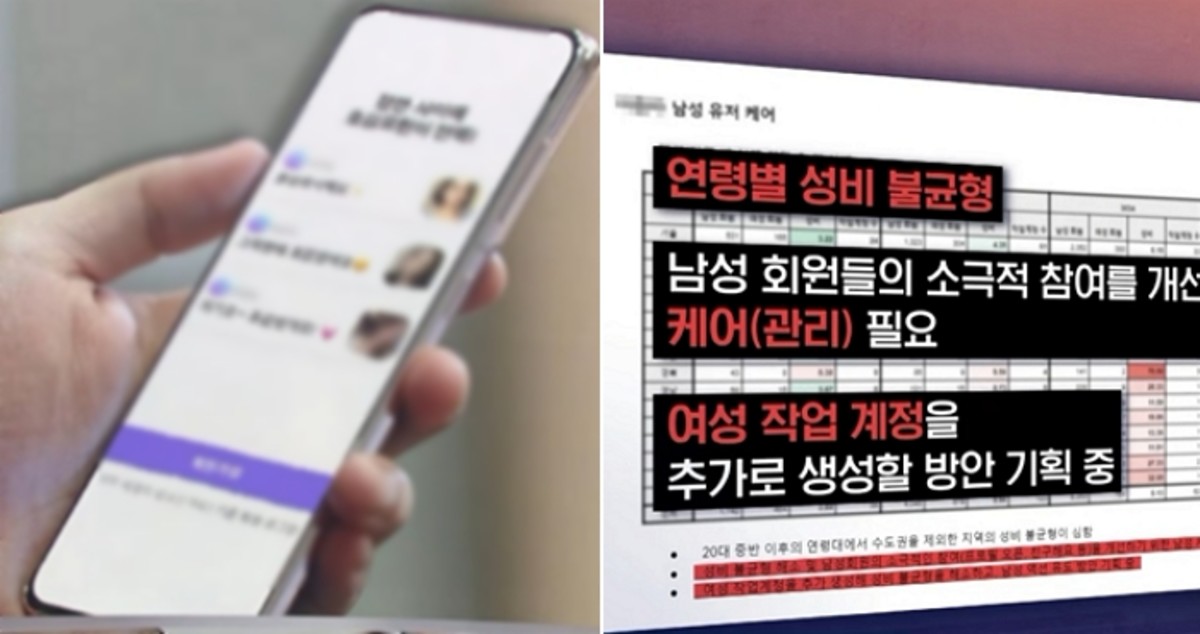 해당 매체가 입수한 회사 내부 자료에는 "연령별 성비가 크게는 약 9대1로 불균형하고, 남성 회원들의 소극적인 참여를 개선하기 위한 관리가 필요한 상황"이라고 적혀 있다.