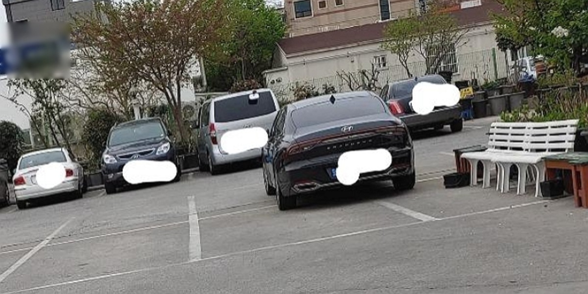 사진을 공개한 A씨에 따르면 그랜저 차주는 주차 선을 전혀 지키지 않고 주차장 한복판에 차를 갖다 댔다.