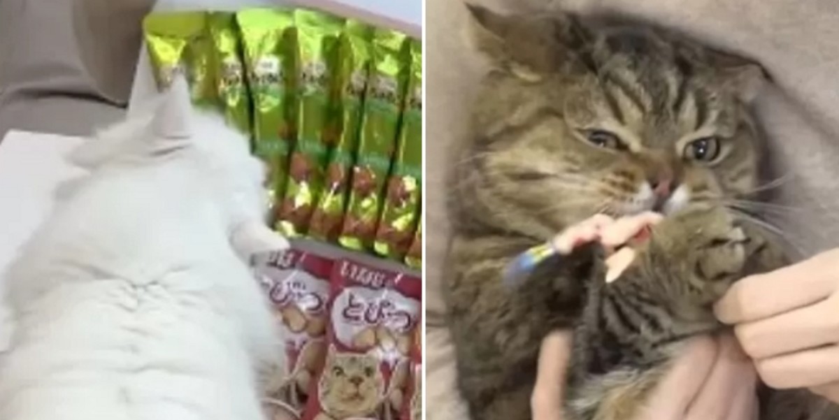 크집사는 "안 된다", "하지 말라"며 고양이들을 말리기 시작했지만 이미 츄르에 푹 빠진 고양이들을 달래기에는 역부족이었다.