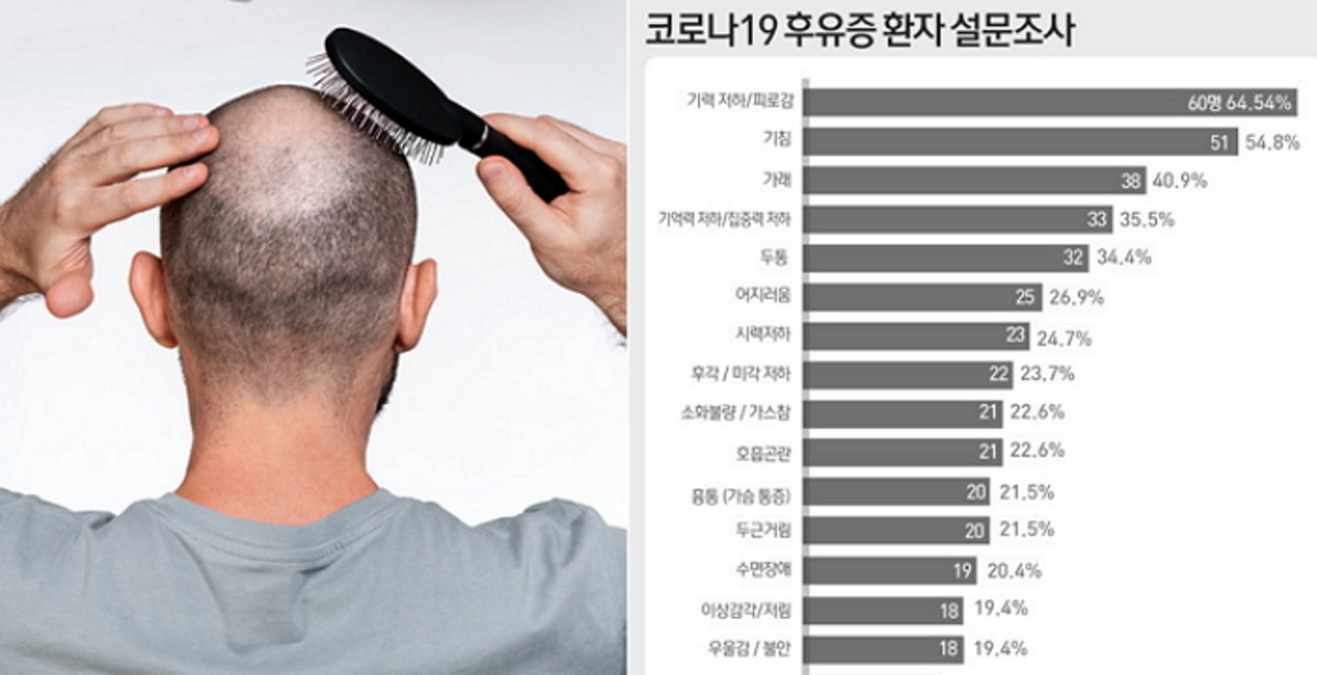 코로나19 확진자가 급증하면서 박씨와 같이 '롱 코비드'(코로나19 장기 후유증)를 호소하는 이들도 늘고 있다. 후유증의 종류도 기력 저하부터 기침, 기억력·집중력 저하, 호흡곤란, 탈모 등에 이르기까지 다양하다.