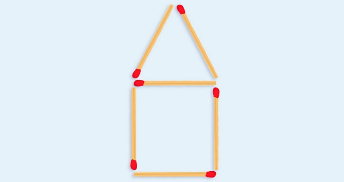 테스트 방법은 간단하다. 주어진 그림에는 '총 6개의 성냥개비'가 한데 어우러져 삼각형과 정사각형을 하나씩 만들고 있다.