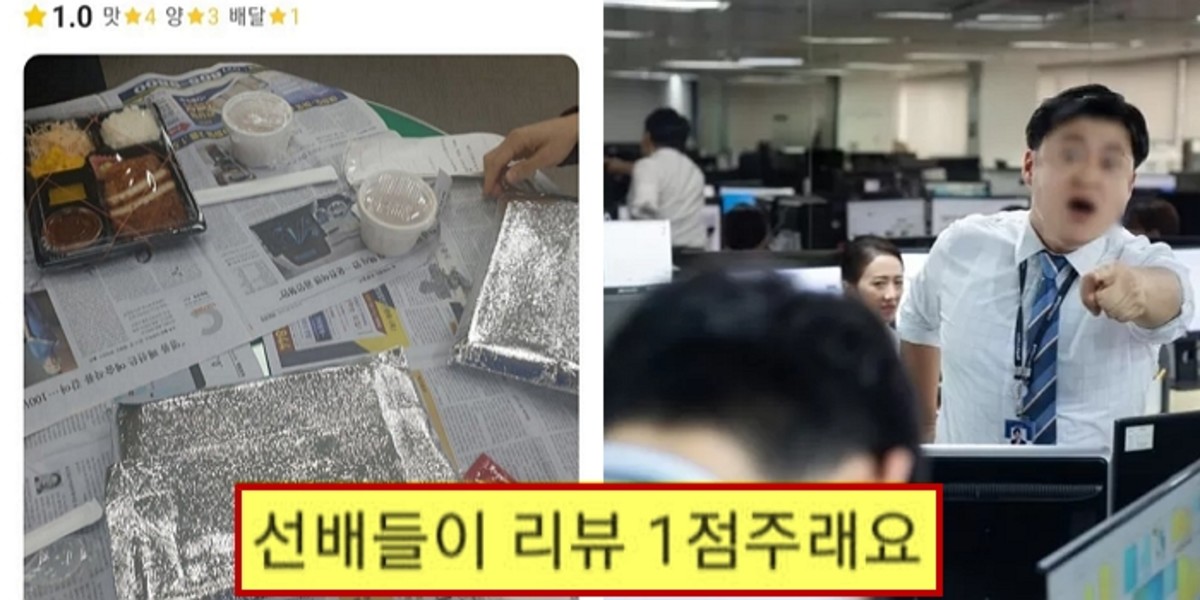 이어 "배달이 12시 56분에 왔다. 점심시간이 끝나간다. (선배들이) 만두를 제 테이블로 던지며 '너 혼자 X먹어'라고 하더라"라며 "선배들이 리뷰 1점을 주라고 하더라"라고 토로했다.