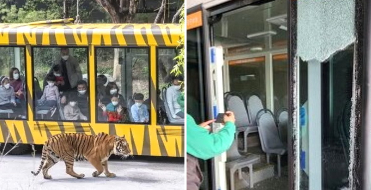 사자 머리와 다리가 트램 안쪽으로 들어오며 승객 28명이 공포에 떨어야 했다.