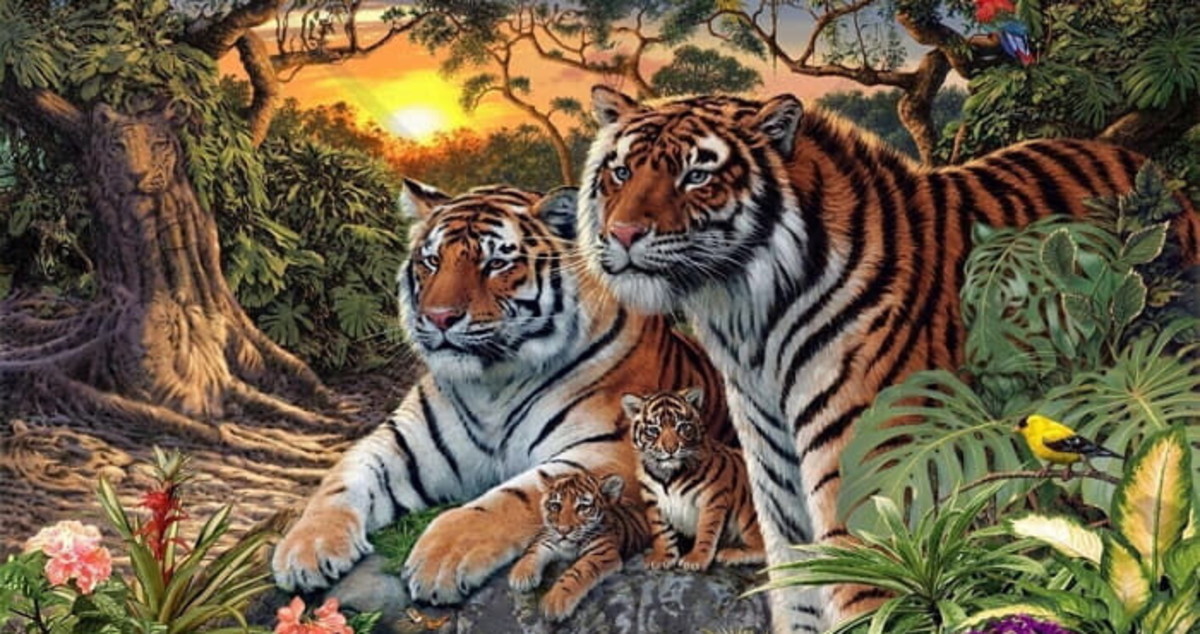 공개된 그림에는 아름다운 숲을 배경으로 단란한 호랑이 가족의 모습이 담겨 있다.