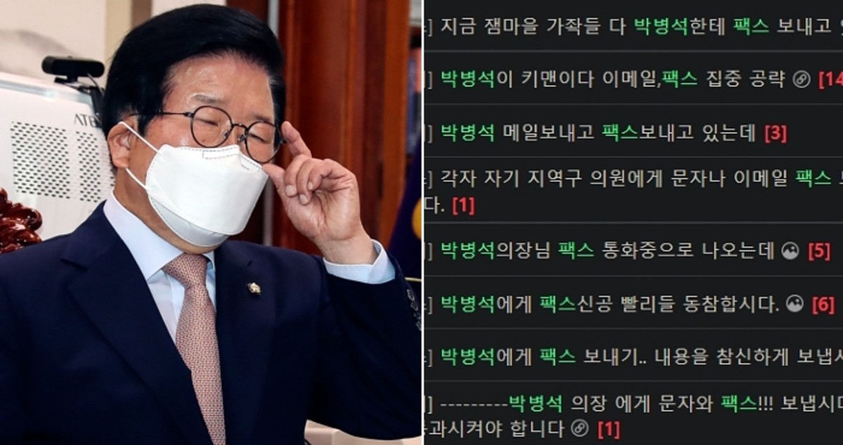 온라인 커뮤니티에서는 개딸들을 중심으로 박 의장 사무실의 팩스번호와 휴대전화 번호 등이 공유됐다.