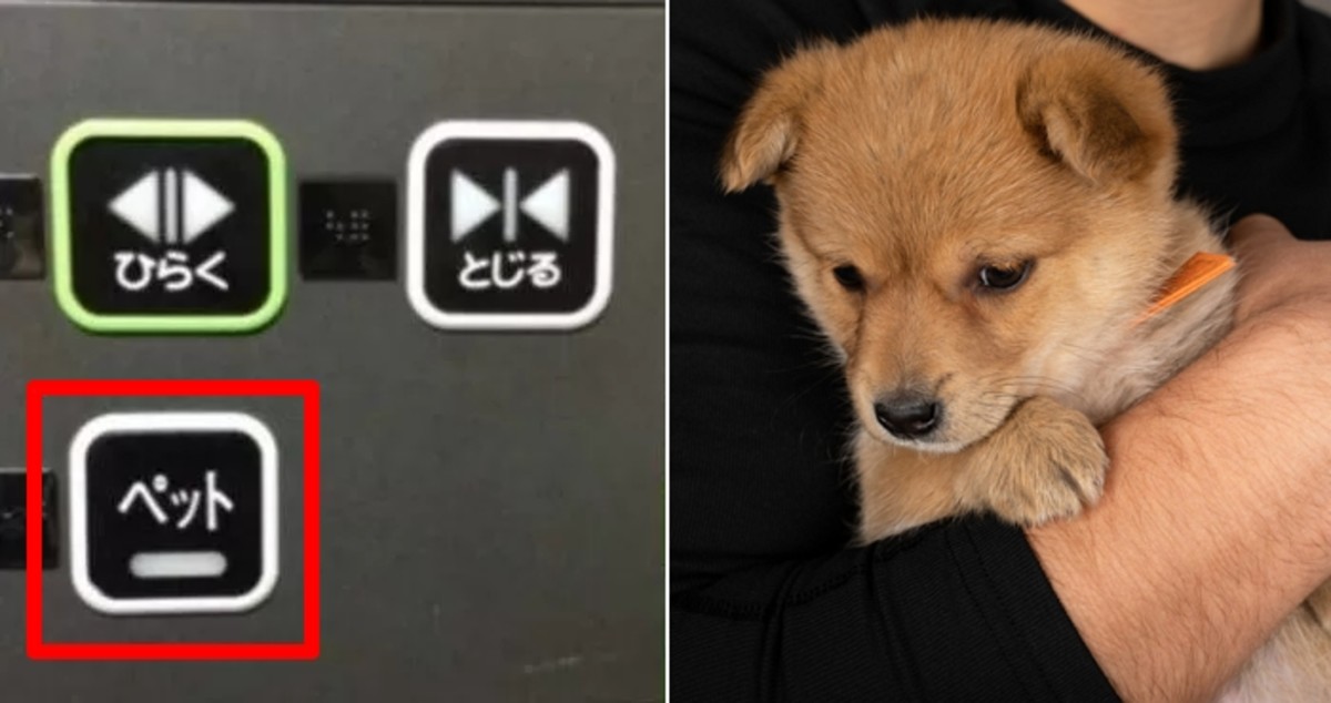 사진을 보면 열림과 닫힘 버튼 아래 펫(ペット)이라고 쓰인 버튼이 보인다. 이른바 '펫 버튼'이다.