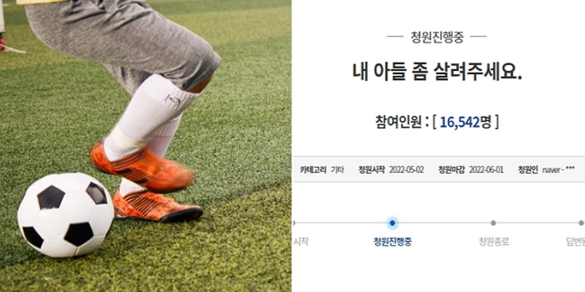청원인 A씨는 "최근 초등학교 4학년 때부터 축구를 하며 떨어져 지내 미안하고 애틋했던 아들이 지난달 27일 새벽 2시 축구부 숙소 4층에서 떨어져 극단적 선택을 했다"라고 말문을 열었다.