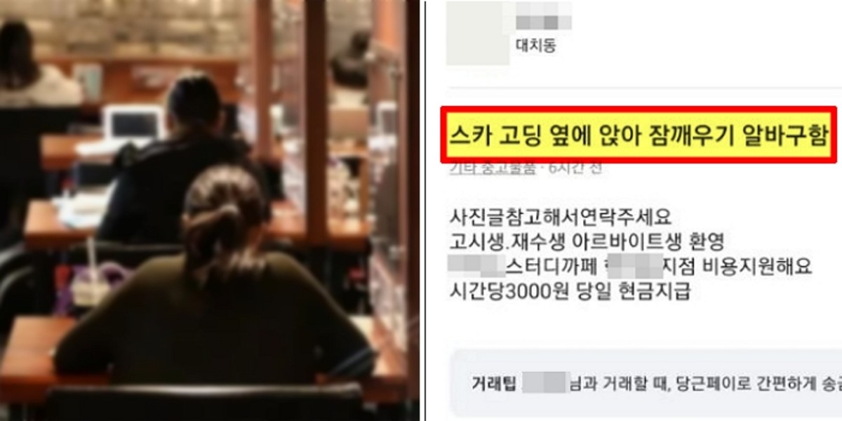 [인사이트] 유진선 기자 = 스터디카페에서 공부하는 고등학생 자녀의 잠을 깨워줄 알바를 구한다는 공고가 올라와 눈길을 끌었다.