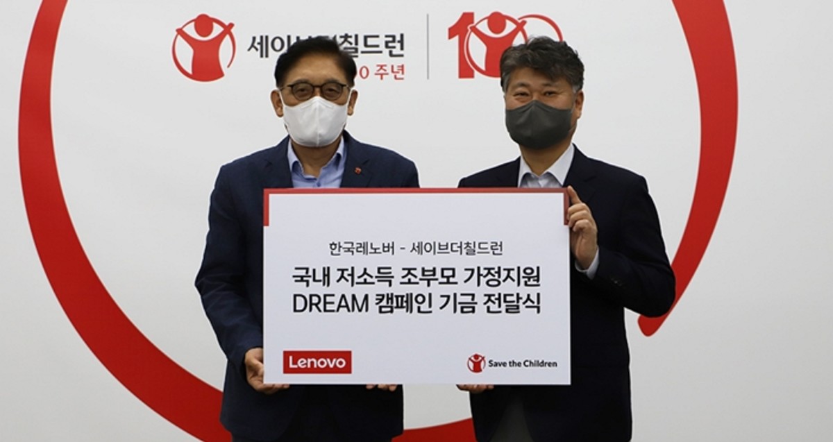 전달한 금액은 저소득 조부모가정과 아동을 지원하는 세이브더칠드런 '드림' 사업에 사용된다. 한국레노버는 세이브더칠드런 산하 종합복지관을 이용하는 아동을 위해 노트북 3대를 추가 후원한다.