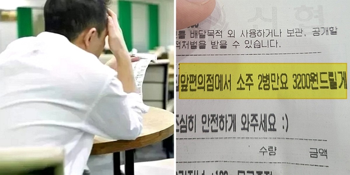 "집 앞 편의점에서 소주 2병만요. 3200원 드릴게요"